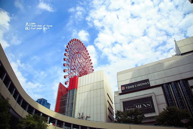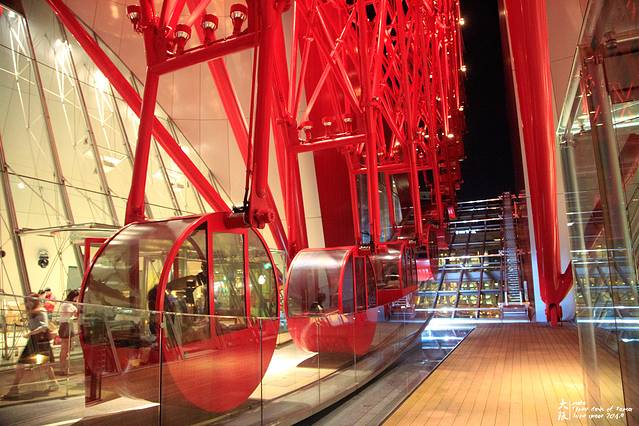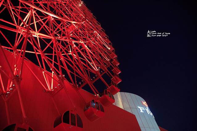 夜晚的摩天轮,红得更加让人无法抗拒。500日元一人,大阪周游卡免费,一圈15分钟,开放时间:11:00-23:00(22:45停止入场)。商场销售至21:00结束,餐饮至22:30结束。入口处有人会让你在绿板前拍照,然后帮你P上摩天轮。呃~~这么俗的事情太不适合骏爷了~~~