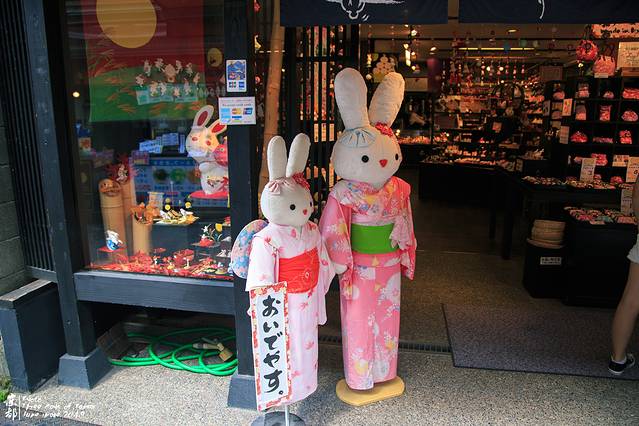 吃得饱饱的一路逛去银阁寺。各式各样的店铺。