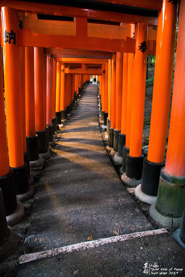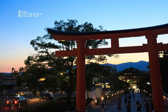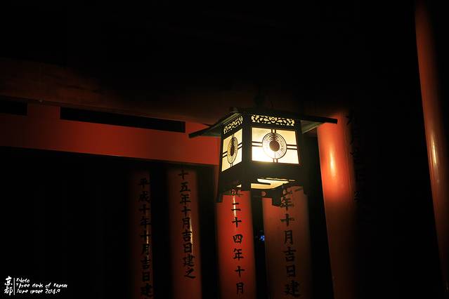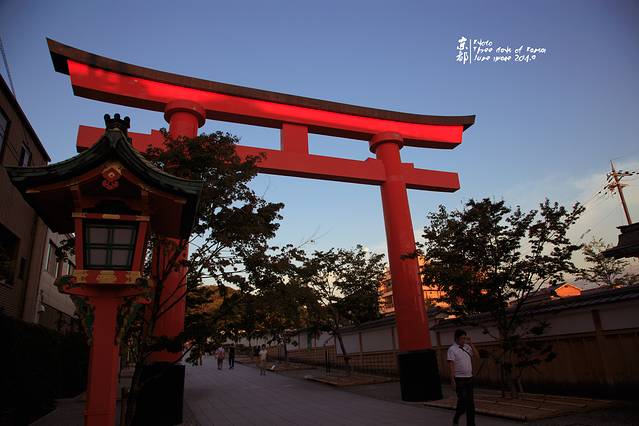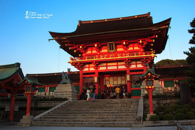 JR伏见稻荷站出来,便能看到这座火红的鸟居。天色已经很晚。