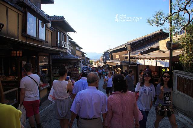 清水舞台。后面的塔在修,拦了起来。但游客还是密密麻麻的,更别说那三道清泉了,排队的人都绕了好几个圈了(骏爷真后悔没拍下来吓吓大家)。现在既不是樱花季也不是红叶季,还是下午这么暴晒的时刻,如果到了旺季,这人潮会有多恐怖啊?想都不敢想。骏爷最讨厌人挤人了,逃命一样逃出来······