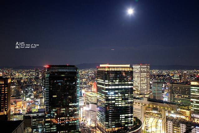 中秋节月亮照亮了大阪的夜空