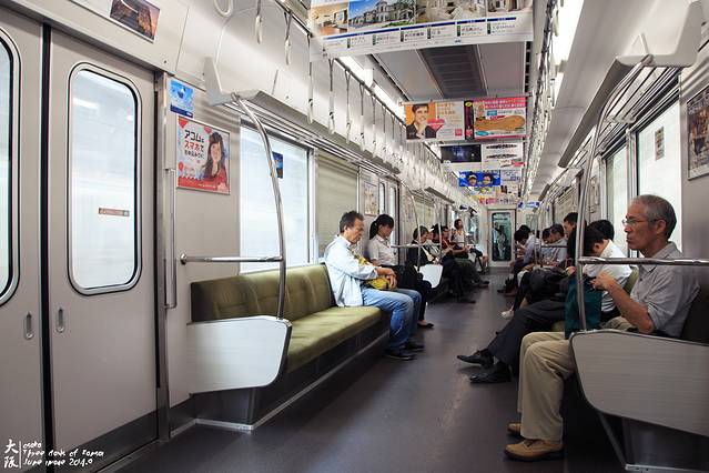 去京都可以坐JR也可以坐阪急电铁。JR到京都站,票价540日元,新快速/快速/普通分别是30/45/60分钟,特急要车上补票。阪急电铁终点在河原町,离祗园很近。骏爷的酒店在阪急乌丸站附近,所以选择了坐阪急。统一票价,特急是400日元,43分钟。两种列车都要在梅田转车,所以我们google前往难波站坐御堂筋线去梅田。