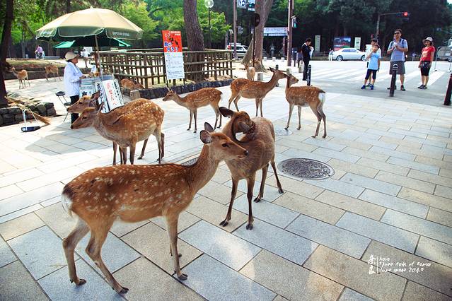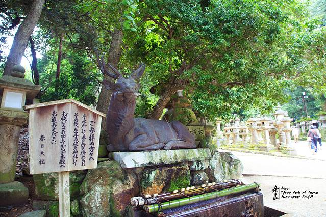 其实出了车站已经在奈良公园的范围内了。不过到了这个转角,看到鹿多起来,看到绿地清水才有了公园的感觉。