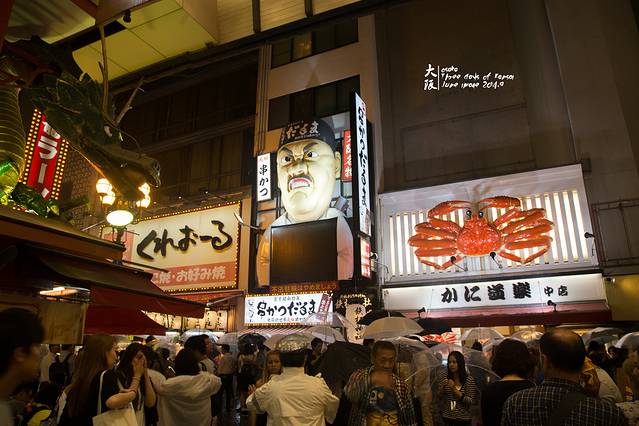 千日前出来,又看到昨晚的蟹道乐了,还有这面目狰狞的元祖串烧=_=``这个点,道顿崛真是人头攒动啊~~