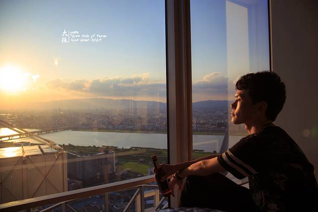 绕着落地窗拍了一圈。夕阳下的大阪很美······