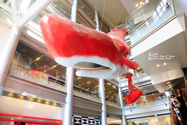 把hep five上上下下逛了一遍,还是有些东西不错的,骏爷也看上了个包,只是越看越像X宝上的山寨货。最终一无所获。hep five门口的红色抹香鲸。