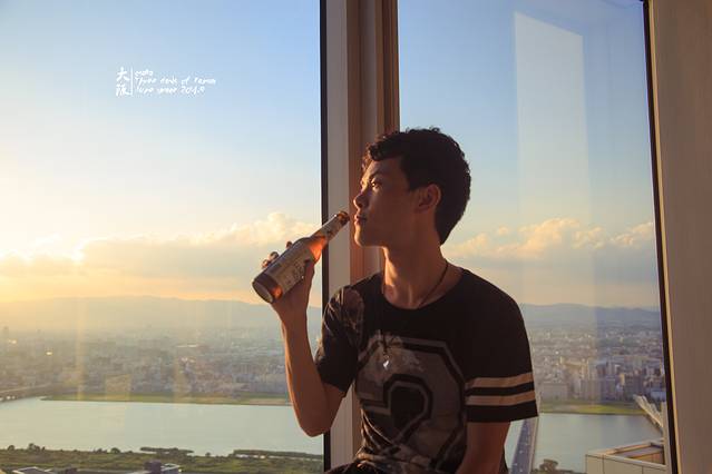 京京把焦点对到了后面的窗户上。但也不知道为什么每次看到这张照片,总能想起夕阳透过玻璃,落在身上那种轻轻得柔软的感觉······在这一刻,这几天赶来赶去的疲惫、迷路的挫败、购物一无所获的失落一下子全都消失不见了。剩下的只有金色的阳光、温暖的大阪、刚好的温度,还有嘴里柠檬、麦汁和气泡碰撞带来的小小悸动。