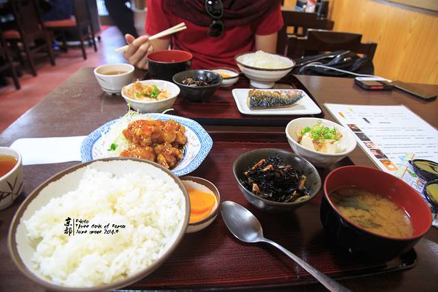 说也奇怪,明明被咖喱熊勾去了魂,骏爷居然走进了隔壁一家很朴实的店。骏爷点的是唐扬鸡块套餐,糖醋口味的,骏爷大爱。京京是烤鲭鱼套餐。骏爷是陆地肉食动物,京京是海洋肉食动物,怪不得京京比骏爷聪明这么多,亲们,给自己孩子多吃鱼肉,少吃猪肉吧,吃什么长什么呀~~~~配餐有豆腐、野菜、大根、味增汤。两个人人均消费800日元。