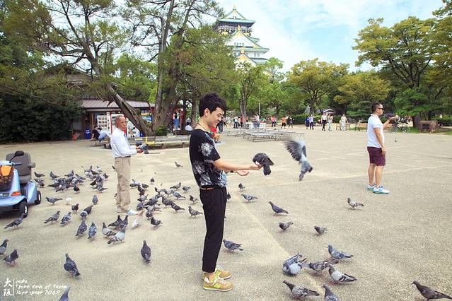 在天守阁下喂喂鸽子