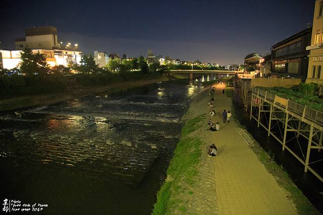 吃吃等等,这顿饭也吃了将近两个小时。沿着河原町逛到鸭川。情人们都坐在岸边卿卿我我。骏爷表示很不爽~