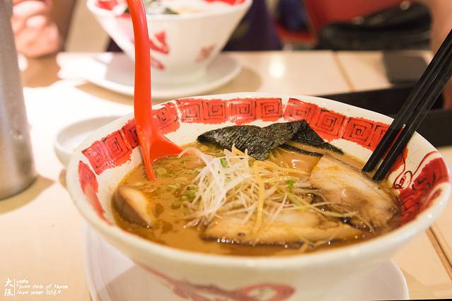 hep five针对的是年轻人,所以相对价格比较平价。直接上到八楼。电梯口就有家拉面店。可能外国游客比较多,店家仔细地给每种面拍了照,做了菜单。只是,骏爷怎么看怎么觉得每种都长得差不多。味道一般般,跟味千差不多,拍照还没拍完,海苔就“痿”了~~人均750日元。