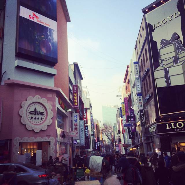 到明洞了,第一感觉就是铺天盖地的化妆品,但是大家不一定要急着购买,所谓货比三家,笔者后来逛弘大和梨大的时候发现有些东西比明洞要便宜。