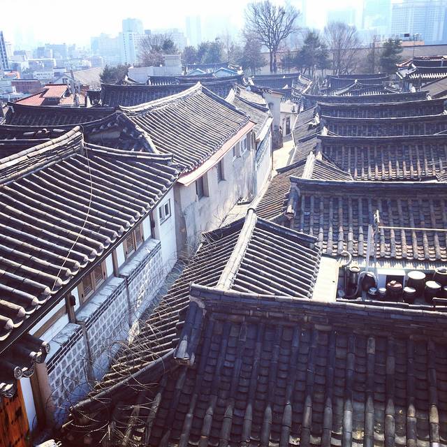 这里是其中的一个景点,需要买票上去,在楼上可以看到北村韩屋的全景,下面这些屋顶的照片就是这么来的。门票约18元人民币,上去后会赠送一杯饮料,咖啡果汁茶自选。其实也就是花钱买了杯饮料再看了下风景。