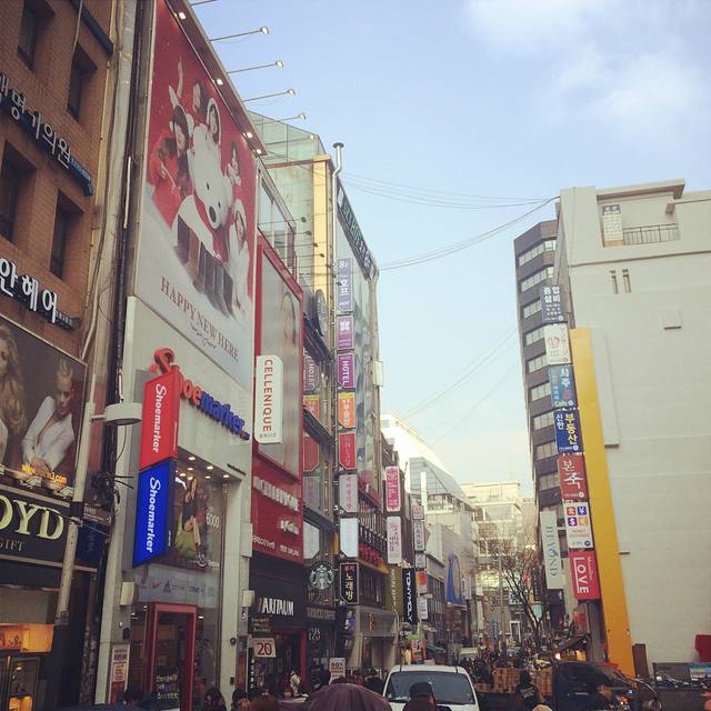 来到弘大,地铁2号线弘大站下。弘大是片很大的区域,各种马路各种穿插,真的要认真逛的话估计能花上2天时间。
