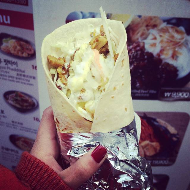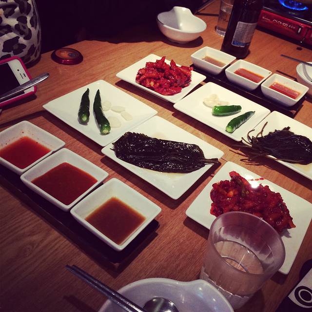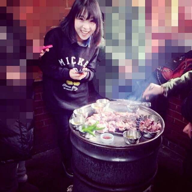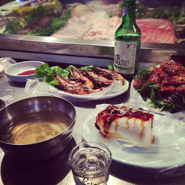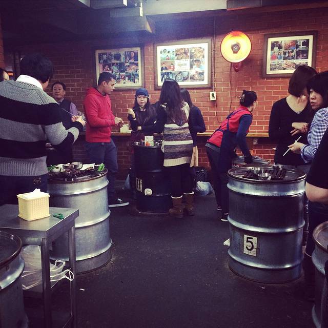 到酒店安置好后已经是下午了,酒店出来走到地铁站的时候必须经过这家烤肉店,一行人已经饿的不行,于是把原定去明洞吃东西的计划临时改成了去吃烤肉,感觉这个站着吃的烤肉在韩剧里看到过。