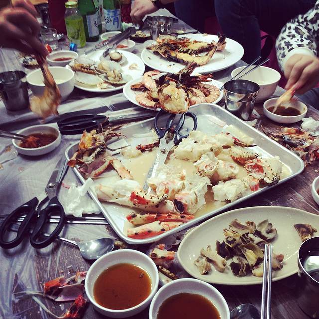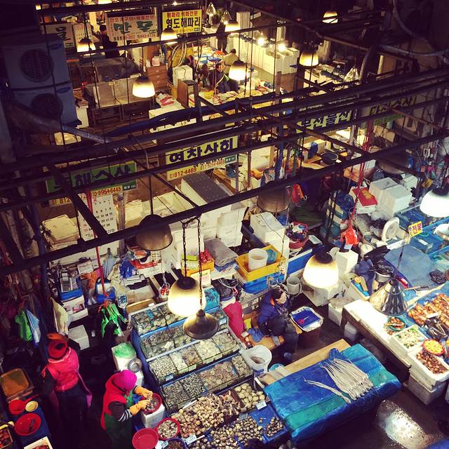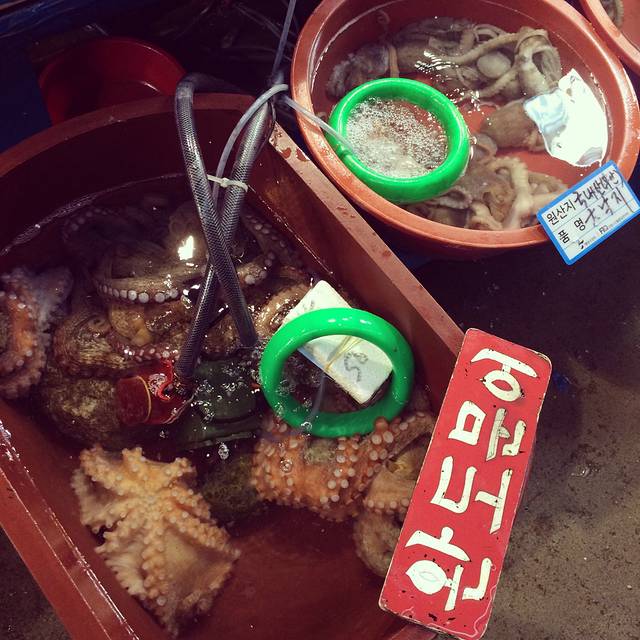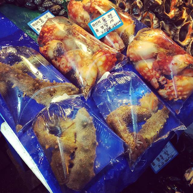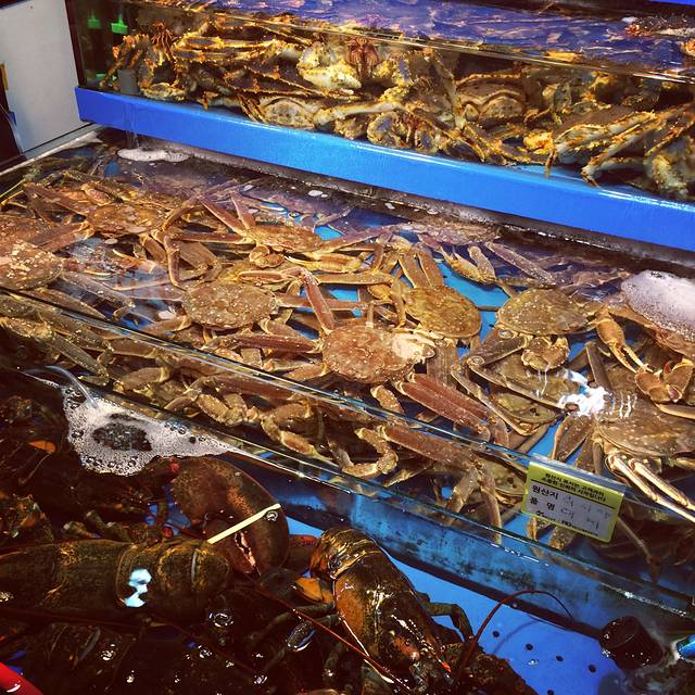 逛完,就杀向鹭梁津海鲜市场吃海鲜了。到首尔如果有时间的话建议去那里吃一顿海鲜,新鲜便宜,还很有感觉哈。虽然距离市区有一段距离但是坐地铁真的很方便很好找。
