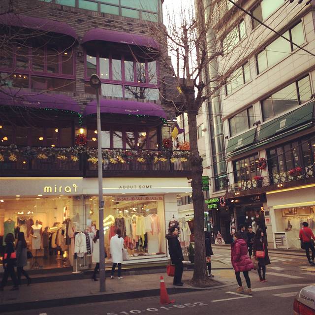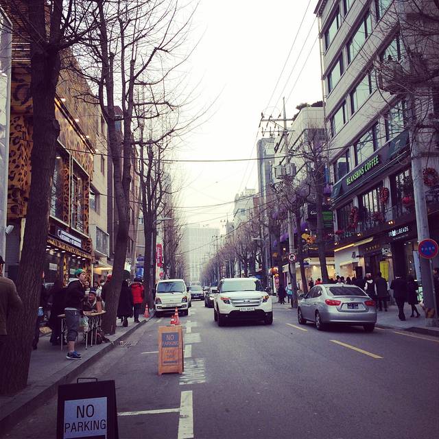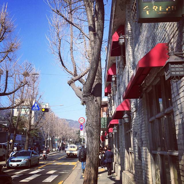 江南新沙的主要区域就是那条林荫道。(主街),后面有一些副街,也是别有一番趣味。 下面的照片就是在新沙洞拍的,新沙洞是首尔有名的咖啡街。