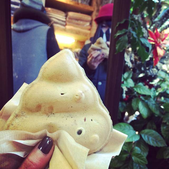 一进门左手边就能看到这个便便烧。笔者吃了一个。外面是糯米里面夹着陷,还挺好玩哈哈。折合人民币6元一个。可以买来尝试一下拍个照。