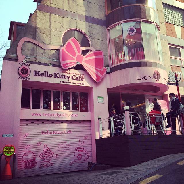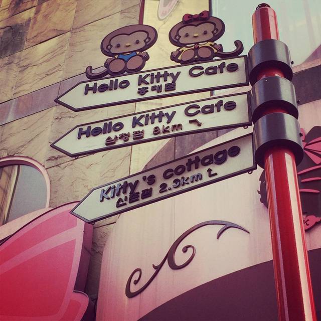 holle kitty咖啡,由于笔者不是很感冒所以就在门口拍了2张照片,粉粉的店面还是很惹眼很可爱的。