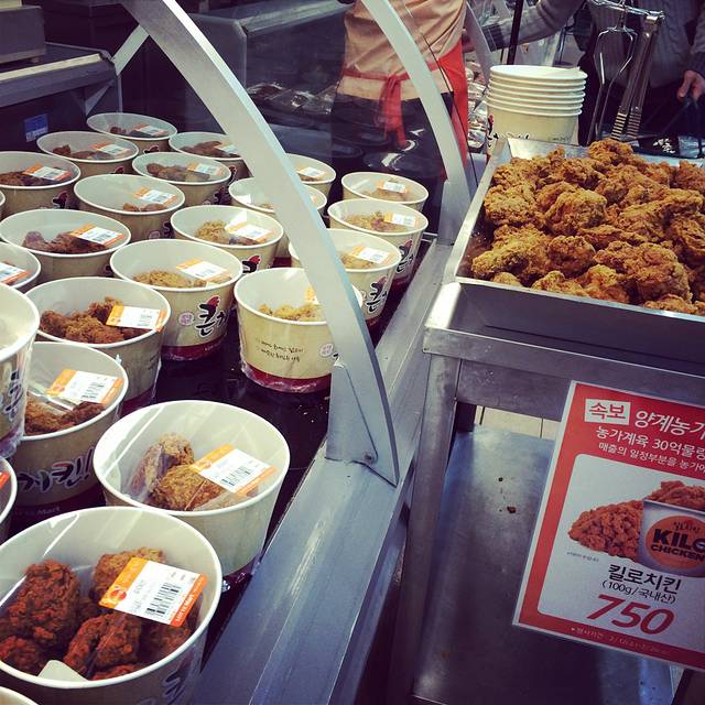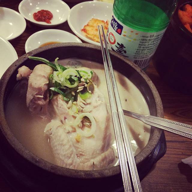 中午去了有名的土俗村参鸡汤,一只鸡里面包裹着糯米人参,口味很清淡但是很鲜美。食量小的可以2个人点一份再加个海鲜煎饼。笔者吃了最普通的人参鸡,折合人民币约100一份的样子。