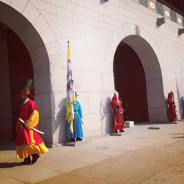 第二天出门就直奔景福宫了,虽然各种都说景福宫比故宫差远了。但是笔者还是认为既然到了首尔,还是想转一下,可结果是在光化门看了下仪式进去拍了几张照片就走了。