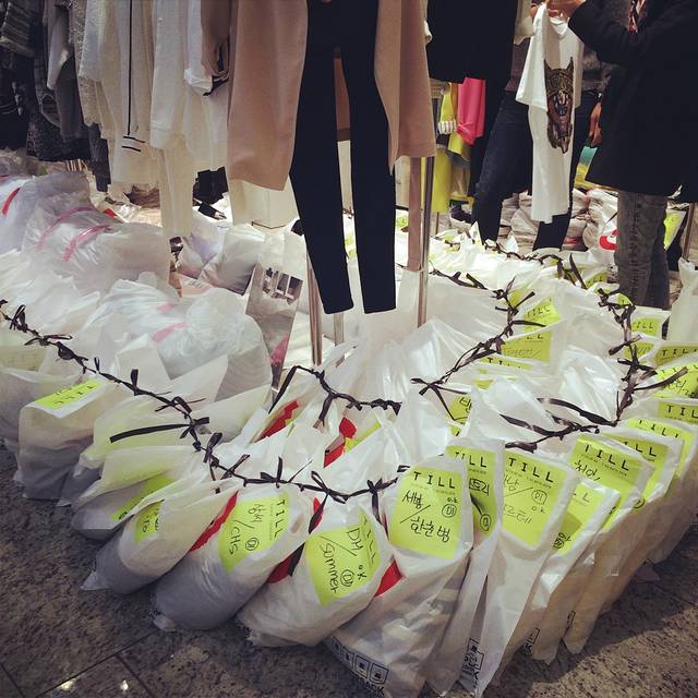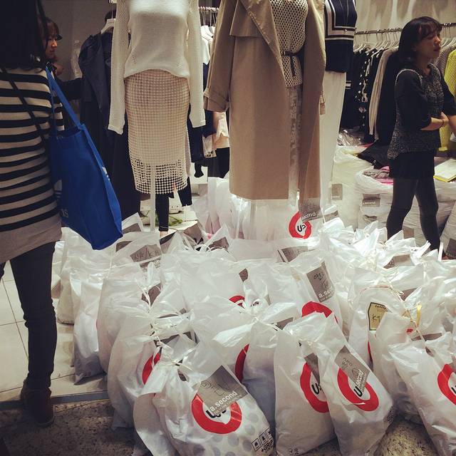 去东大门避开周一,很多店铺周一会休息。这次我们逛两幢楼:DOOTA和U:US。先说下两个的区别,DOOTA是零卖的,外地游客比较多,但是东西都偏贵;U:US就在DOOTA的斜对面,本地人去那的比较多,进去就能感受到批发氛围,每家店内都是齐刷刷的打包袋,买东西就要看情况了,有的支持零卖有的只支持批发,价格相对来说实惠很多。