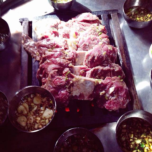 后来每天经过那里都会看到有人在排队,可能我们第一天去的时间是下午所以不用排队。后来百度了一下才知道这家店是在韩国很有名的烤肉店,已经有50年历史。所以大家如果去新村的话可以去尝试一下,真心赞爆了。价格是折合人民币100元一块肉,虽然不算便宜,不过肉质很好肉也很大块哈。