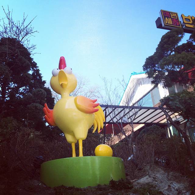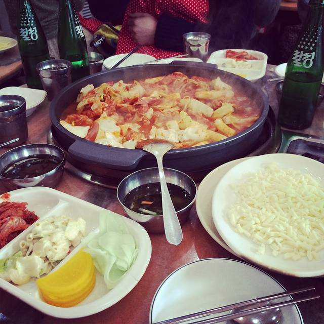 第三天是大学一日游,睡到中午起床,出门就去了春川鸡排,从我们酒店过去步行也很近。我们去的还算早所以没有排队,后来吃的时候看到门口有很多人在排队,并且有很多当地人。这个是按人头点单的。人均60人民币吧。服务员会很热情的不停帮你扮菜,吃掉锅子里的菜后还可点一份饭放在里面伴着酱汁炒,但是里面是有芝士的吃多了会有点腻。