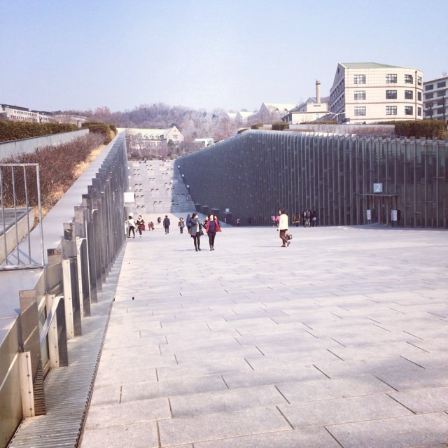 梨大:地铁2号线梨大站2号口出站直走就到梨大校门,梨大推荐路线是:看到前往教堂的阶梯后,走左边的坡上山,最终还是会到达教堂前面,再从正面的楼梯离开。一定要去看看非常有名的下沉式建筑,还有那著名的基督教堂。
