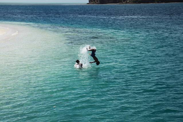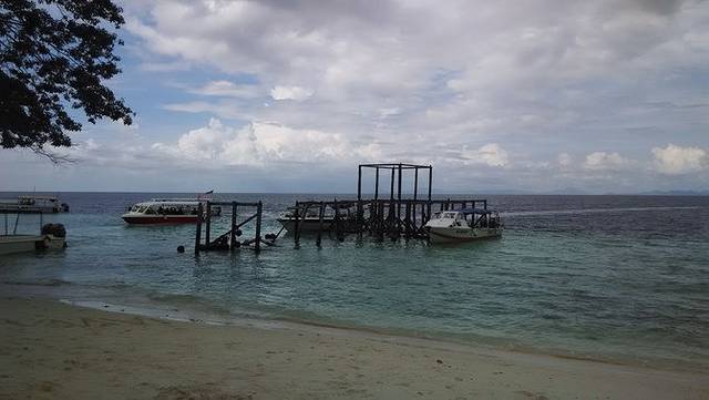 这个小岛相比马步、马达京、POM POM岛、诗巴丹岛并不是很知名,相比其它的地方,这里是少有的安静,但这里一样有着白沙滩,也有着层色分明纯净的海水。SIAMIL岛离马步岛开船约40-50分钟,在马步岛的东北方向,从马步岛出发和诗巴丹是两个方向,在SIAMIL岛和SIPADAN岛中间就是著名的卡帕莱。岛很小,而且多丘陵地貌,真正能够活动的地方非常的小,岛上有一个兵营,没有居民居住。岛上的兵营里的卫生间可以使用,而且大兵们都很友好。岛上有一片白沙滩,从白沙滩到简易码头附近都可以浮潜。我们去的时候是找的一家代理,我们一共7个人,包了一条船,每人180RM,包括了浮潜、来回的快艇,还包括一顿午饭,水也是无限畅饮。早上大概9点出发,下午14:30回到马步。