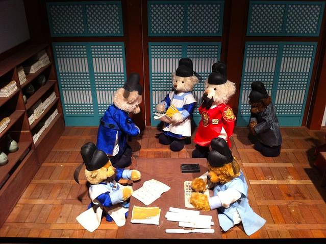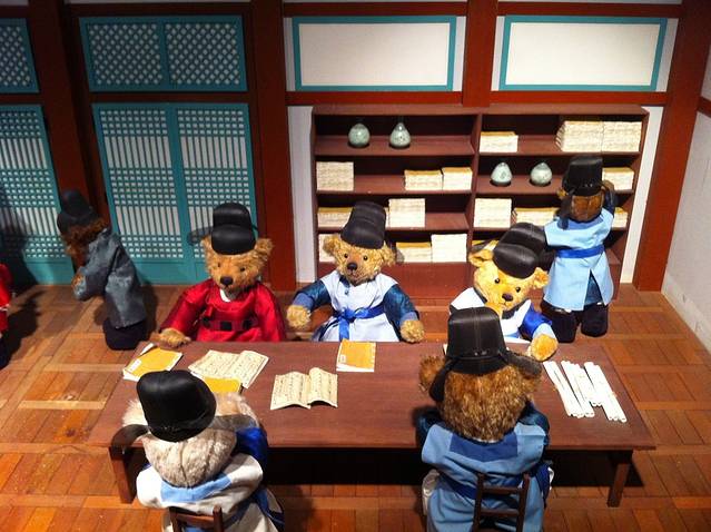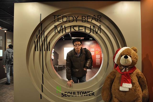 奇怪泰迪熊博物馆里为什么只有我们两个人,Paul说只有我才会对这里有兴趣。我和每只大熊合照,玩得不亦乐乎。博物馆分两部分,第一部分是小熊演绎韩国历史,第二部分是小熊演绎首尔的现代生活和景点,第二部分更有趣。