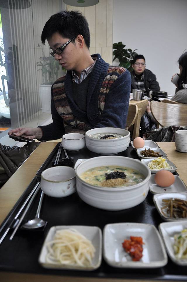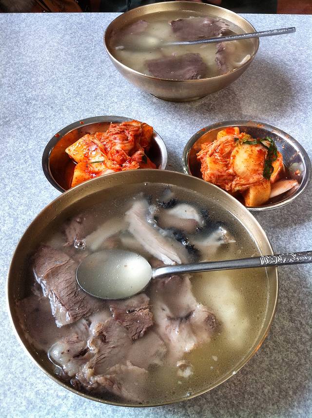 味加本粥店是我在一个网友的游记中看到的,我们点了一份香菇牡蛎粥和一份西兰花鲜虾粥。我在首尔吃到的韩国风味以外的菜肴都很一般,这个粥也是,小店的位置和环境都还好。最不推荐的还是后面要提到的旅行书上介绍的很出名的牛肉汤河东馆,还没兰州拉面的汤好喝呢,又一副店大欺客的做派。