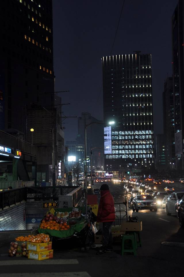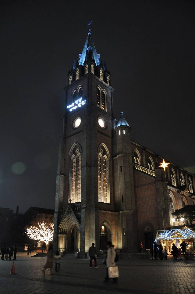 晚上的首尔有些冷,我们一路走去明洞教堂,略作停留就离开了。事先没做功课,也不知道今夜首尔哪里会有倒数活动,因为正要去乐天玛特,以为就要在超市里倒数了。