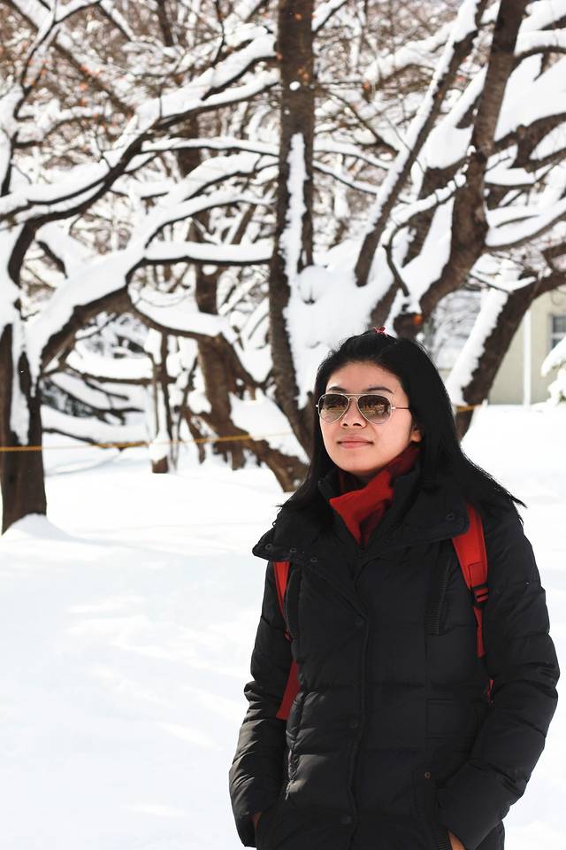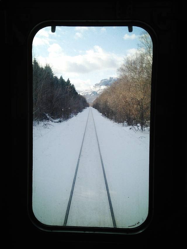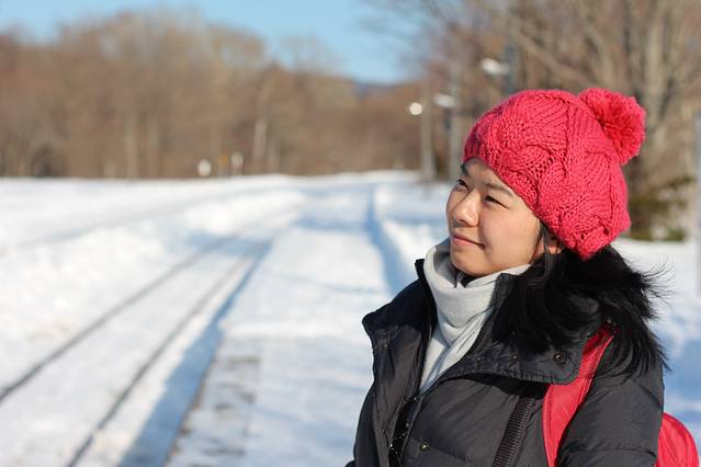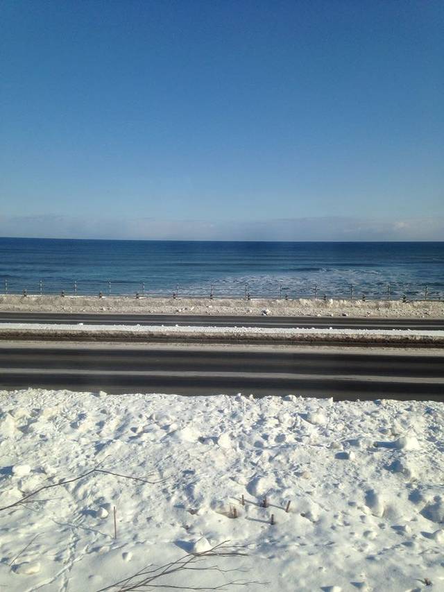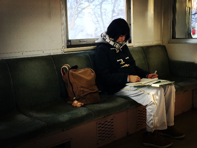 今天是个阳光灿烂的好天气,在酒店大堂里迟吃日式早餐,海苔饭配味噌汤,豆腐和蔬菜色拉,一杯咖啡。阳光直照进大堂,加上室内的暖气,恍然觉得是早春。我们坐十点的火车出发,从网走到川汤温泉的火车路线是沿海岸线行驶的,坐在位子上,右手边是皑皑白雪覆盖的大地,左手边就是大海。北方的海蓝,平静,简洁。火车也只是单节的小列车,偶尔在某个不知名的小站稍作停靠,小站木质结构,尖顶,边上有木质楼梯搭出来的高台,背景一律是雪,和我看过的日剧里演得一模一样。我想听听那首主题曲,开头就是火车的鸣笛声,可惜因为海外版权的关系虾米百度都不能收听,只得作罢。不知道为什么,我在北海道并没有感觉到冬天肃杀的气氛,也许是因为到处都有暖气,但即便是在室外,即便街道上的行人和车辆都十分稀少,我也只是觉得洁净,这两天感叹得最多的词就是干净,这种因为干净和简洁而带来的内心的平静,真是非常迷人。在车上拍到一个女孩,估计是学生,在做练习卷,还有一个在看书。几个乘客昏昏入睡,车厢里出奇安静,这也是我在日本这一天多来很深的感受,日本人都习惯独来独往的吗?无论是学生,年轻人还是老人,即使有同伴也几乎不交流,即使交流也几乎都是打手势或努努嘴,孩子玩着手里的游戏机或漫画,搞得我也只能屏息敛声,不敢喧哗。空闲的时间我就留意日本人的穿着。其实在上海我也能很轻易地认出日本人来,基本就是靠穿着和由此突显出的气质。早知日本人穿着考究,但这种考究和花哨全然无关。在札幌这样的城市,我也很少看到年轻女子身上的衣服超过三种颜色,且大多颜色较素,只不过因为她们都化细致的妆,所以就比较显白,不会因为穿了素色而显得没有精神。此外我还特别注意了一下男人,尤其是老人。北海道并不是日本的中心地区,但老年人的穿着和中国三线城市的不是一个档次。昨天有一个老爷爷站在我们的座位旁,头发花白了,穿一套花灰色羊毛西装,外套格子大衣。西装裤显然是熨烫过的,但看不出裤线,只是平直。这算是考究的,更普通些的是羽绒服和长风衣,基本就是优衣库风格,厚的休闲裤,抓绒衫,外面一件羽绒服,脚上是运动鞋或是高帮的休闲鞋,非常简洁清爽。虽然在电影里经常看到发型花哨的男人,但现实中基本没有。日本男人的发型很利落,几乎不染色,很多都少年白,但仔细看,却是用心打理的,细心修剪过,有些地方,比如头顶,烫个微卷,非常低调。即使是头发稀少的老人也有头路,梳得清清楚楚。你说他们对外形的追求,有多么华丽,没看出来,但那种精神面貌和同年龄层的中国人,似乎有着很大区别,至少我觉得他们对自己还是一丝不苟的。另外,日本人胖子也比较少,大多精瘦,这可能和他们吃的东西有关,在餐厅里牛肉或猪肉饭比海鲜饭要贵,估计也是吃不胖吧。