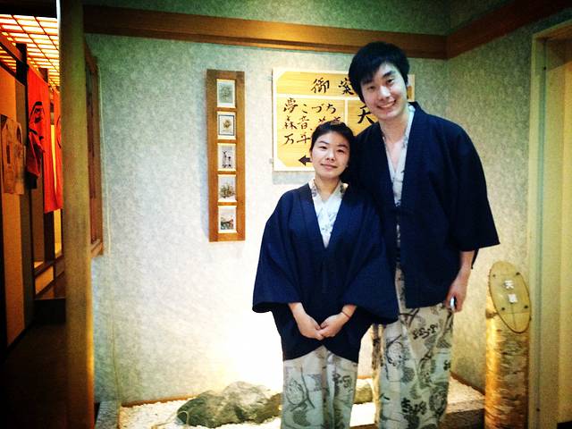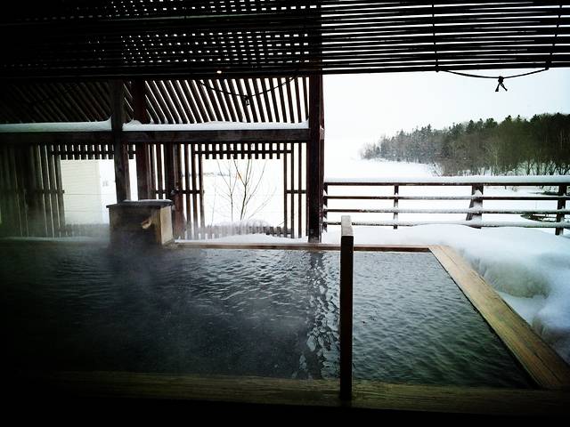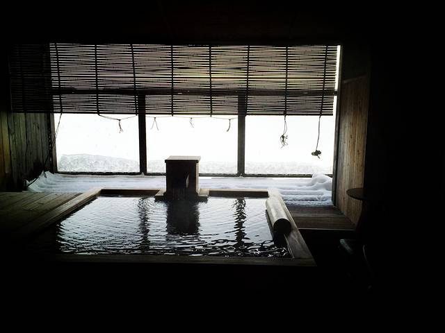 傍晚,回到旅馆后我准备在晚餐前泡一次正宗的日式温泉,别笑话,我真的是第一次泡天然温泉,知道日式温泉又有不同之处,还特别在之前就做了功课,还是有些小紧张。介绍一下,首先在泡汤前就要换上酒店为客人准备好的日式浴衣,冬天的浴衣除了单和服还配有一件短外套,估计春夏季是只有单的。把大小两块毛巾和替换贴身衣裤放入包中(好一些的酒店可能会在浴场提供毛巾,就不用带),沐浴用品可以不带,酒店准备得非常齐全。日本的温泉是裸身泡的,所以不要穿泳衣哦,除了特殊指出,一般都是男女分开的。进入更衣室后先将东西放好,只带一条小毛巾裸身进入温泉,泡汤的地方旁边都会有淋浴设备,先将身体冲洗一遍,不需要使用沐浴露和洗发水,就可下水泡汤了。我住的酒店有露天风吕,一边泡汤一边看着雪景,五点多的天气已经完全黑下来了,四周几乎没有灯光,脸很冷,身子却很热,周围是铺着雪的森林,远处的松枝上落满了雪,黑白分明,有如宣纸上的墨色。泡汤的时间因人而异,但如果是和我一样第一次泡,建议不要太长时间,十分钟左右即可,否则怕身体受不了。温泉水非常温暖,零下十几度在露天泡也完全不觉得冷,露出水面的部分只要不时用手泼点水就可以了。泡完这第一遍后马上进行第二次淋浴,这一次可以彻底清洗一下身体和头发,用沐浴露洗干净,接着再泡第二次,可以是露天的也可以选择室内,看个人喜好。这一次泡完后无需淋浴,直接回更衣室擦干身体换上酒店的日式浴衣即可。一般泡汤的时间是在晚餐前,就寝前和早上起床后,当然如果你兴致好也可以随意挑选自己喜爱的时间。日本的温泉场所设施非常好,更衣室的地板好像是一种竹子编成的,软,暖,不滑,赤脚走在上面舒服。女性用品应有尽有,梳子放在专门的消毒柜中,拿出来时暖暖的。我第一次去没经验,随身带了沐浴露洗面奶洗发水护发素面霜乳液梳子各种东西,结果一样没用上原样拿回来。