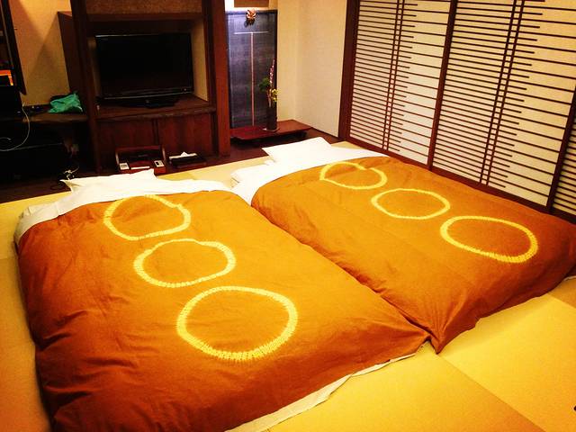 名汤之森是一个比较低调的温泉度假村,我发现来这里留宿的基本都是日本人,且以中老年人为主。做功课时网上的评价也说,十分的日式,十分的传统,没有网络,没有自动洗衣机和烘干机,服务员也几乎不会说英语,到了以后发现确实如此。吃晚饭的空档服务员已经来房间铺好了榻榻米,我订的是传统的和式房间,白天没有床铺的,晚上趁你吃饭时才会帮你铺好,房间里除了两把小椅子之外全部靠跪坐,坐不到半小时腿就废了。。但和室房的空间布局极有特色,干净简洁,没有一样多余的物什,矮几上只有一个漆盒里放着全套煮茶的工具,造型古朴。如果从未住过,值得体验一下。明天的目的地是继续漫无目的,去一个神社,然后可能坐火车去知床,多半也是闲逛,或者仍旧泡温泉吧。