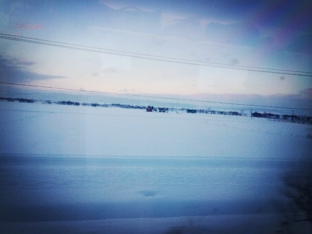 走之前曾考虑过在北海道租车,但我们没有时间换国际驾照,加上对雪天驾驶也没经验,怕有危险,就将希望寄托在了JR上。我对JR还是很有感情的,主要是看过的日本电影和日剧里多次出现过,它早就被符号化,成为日本文化的一部分了。事实证明,选JR是英明的选择,火车一出站,就是白茫茫的大雪,出了札幌连高楼都看不到了,沿路要么是被雪覆盖的农场,要么就是森林,零零散散的几间两层小楼,估计是民居,一律斜顶,十分干净。一路看看风景,累了就小憩片刻,喝了一杯北海道小林牧场出品的酸奶,翻翻带在身上的电子书,因为是赏雪,所以特地下了川端康成的《雪国》。其实小说的发生地并非北海道,而是距离东京较近的日本中部地区新泻县,但那著名的开篇,火车穿过隧道来到一片白芒之中的那个场景,还是让我不由地联想到了北海道。虽然文字已给了人无限的遐想,但你仍然会有亲临的欲望,哪怕只是图个相似,有时候虚构和真实的关系就是那么微妙。