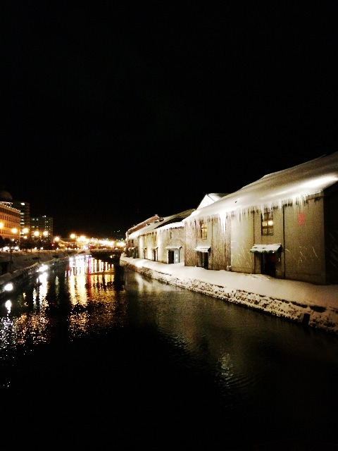 据说小樽的博物馆琳琅满目,有文学博物馆,琉璃制品博物馆,八音盒博物馆等等,建筑无一例外是欧式的,入内参观也完全免费,可惜去时大部分场馆已经关门,路过八音盒博物馆时,里面传出天空之城的一段八音盒音乐,回荡在冷清清的空气中,顿时迷醉了,觉得周围的一切都是那么安静,驻足听了好一会儿,很难想象如果是在游人如织的白天,是否还会有这样的心境,所以迟到也有迟到的好处啊。小樽中心区的地标是小樽运河,河边有一排仓库,现都成了咖啡馆或点心店,提供别致的下午茶。