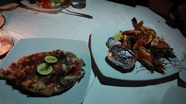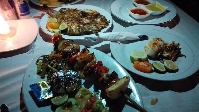 这家便宜很多,而且更加实惠,后面会介绍到!我们坐在海边都只能点根蜡烛,但还是觉得很黑,旁边一桌老外直接带了个头灯顶着头顶吃饭。