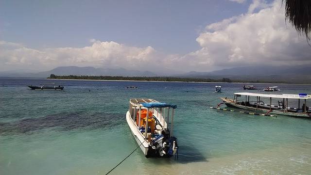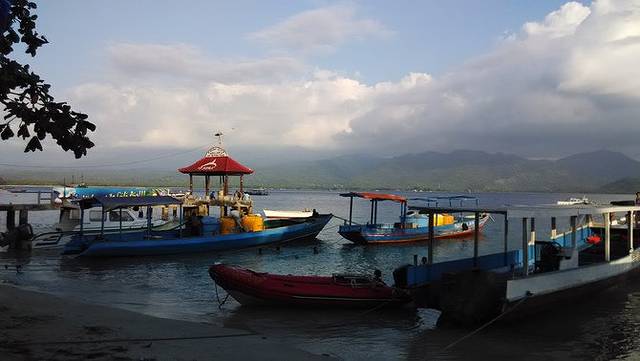 开价往返要1200K,跟代理砍价,砍不下来,可能也是进入了旺季,巴厘岛往返GILI AIR最后500K一个人成交,也还算能接受,还包含了去程接到酒店,回程是把我们送到库塔海滩,本来是想直接送机场的,后来想想在库塔逛逛在去机场。基本上每天有两到三班船快船去龙目岛和GILI AIR岛,有几家公司在经营,时间也都差不多,我们这次坐的这家还挺靠谱的,时间都比较准时,船的情况也不错。一般从库塔或者金巴兰出发有两个出发地点,一个是八丹拜一个是沙努尔,还有个在AMED出发的,不过这个码头离图兰奔和乌布那边比较近,离库塔和金巴兰就太远了。从八丹拜走坐船时间短一点,大概是1个半小时,但先坐差不多1个小时的车到八丹拜的码头,从沙努尔出发从车时间短但坐船时间长。而且八丹拜的船都是早上出发中午就可以到GILI AIR,大多数人都是坐这班船。