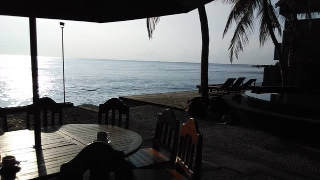 潜店的住宿条件还是不错的,走两步就到海边了,海边的景色也不错,餐厅这边就有免费的沙滩椅