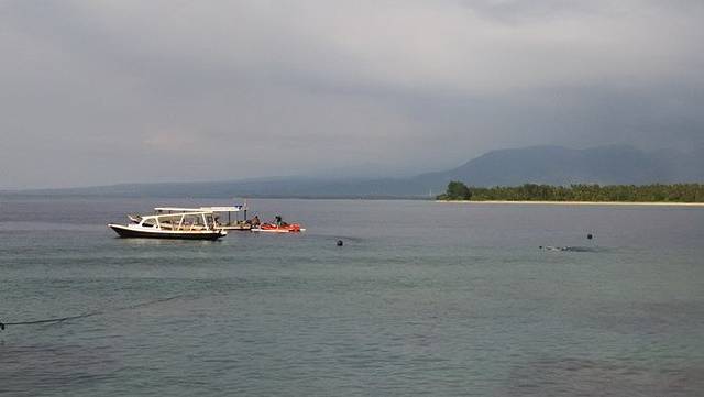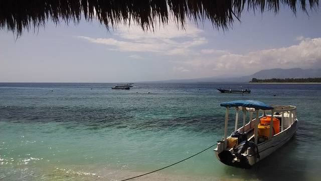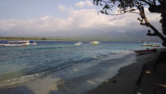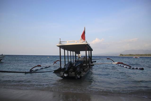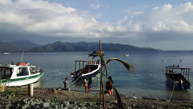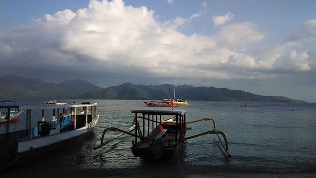 观察了一下全船就我们俩是中国人,其它都是老外。等了大概有半小时才开船,大约1个半小时的样子(因为船上放了一部太极2,看完了才到)到达GILI AIR,船好象是先到的龙目岛,然后才到GILI AIR,因为第二站停靠的是GILI AIR,不是象网上有些攻略所说的先到GILI群岛在到龙目岛。岛上都没有象样的码头,上下船就是工作人员搭个梯子,到AIR岛的就几个人。到了岛上才发现这个岛好安静,人不多。问了船公司的工作人员怎么到MANTA DIVE,工作人员示意往右手走,也可以坐马车,当然对外国人都不便宜,50K起。其实走走并不远,这个岛本来也不大,沿着海边的路大概走了15分钟就到了。