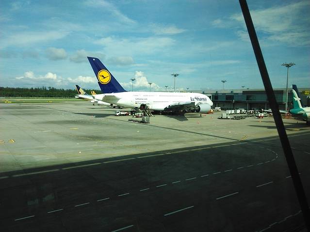 新加坡的天气很好,航班也非常的准时。这个是不是A380?