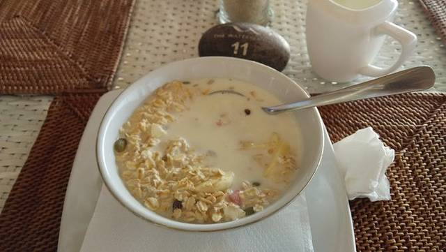 今天的主题还是潜水,由于昨天觉得水下环境,所以决定租台水下相机,当时就有一个小黑在推销,就砍了砍价350K成交租一天,然后又买了张SD卡一共450K。小贵但后来觉得还是值得的,还得感谢我的潜导“圣诞”帮我拍了好多照片,还是第一次在水下拍照。效果非常的棒。一会上图,先来几张早餐的,潜店的早餐也非常不错。