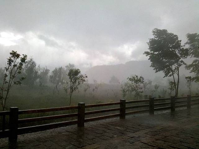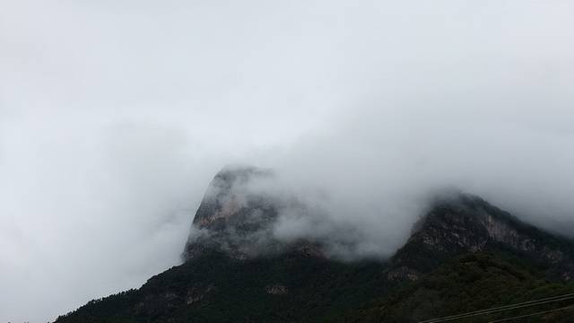 云雾缭绕的山峰。这天的天气实在不是太好。