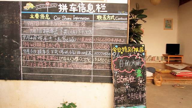 一出火车站,就有位本地开客栈的大妈缠上我们,问我们要不要住宿,并跟我们介绍她家客栈以及大理的基本情况。如果你有兴趣,不妨可以听听他们的解说,并问一些你想问的问题,他们都会耐心地为你解答的。到达大理古城的时候,也可以找这些大妈或阿姨问路,不管是否住他们家,他们都会给你指路,哪怕你问的是其它客栈的位置(我问的就是这个)。大理人民,还是很热情的。