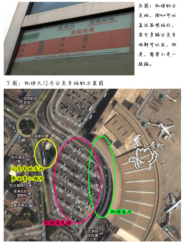 注:图中有關巫家垻機場去往市區的信息已經過時,昆明的新機場是長水機場
