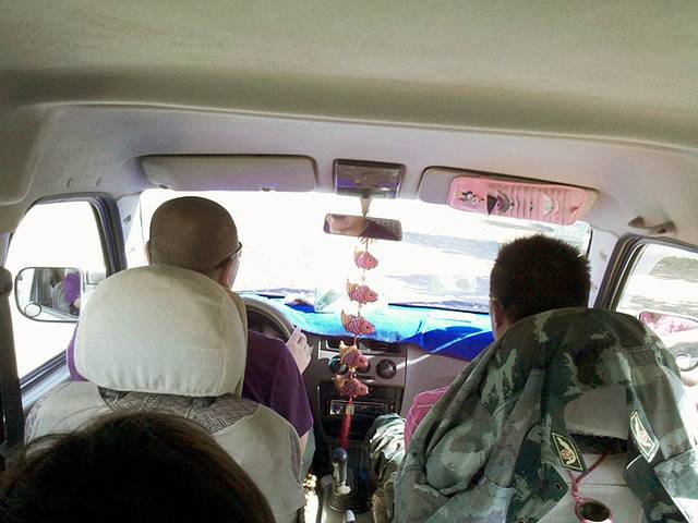 忽悠哥坐在车辆右前类似副驾的位置,赚到了。那个位置特适合拍照。而我则坐他的对角线——最后一排的左边。。。