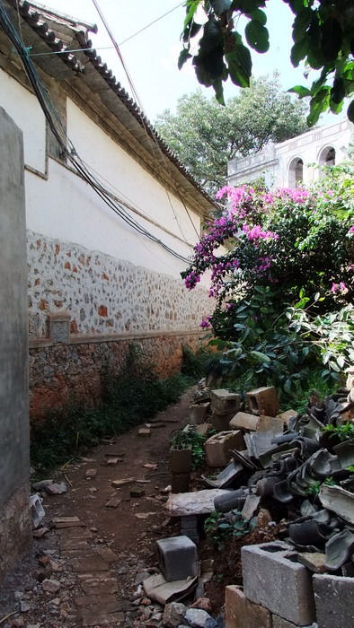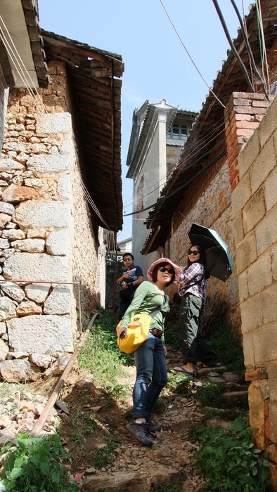 出了严家大院,我们感觉喜洲之行远远未完,因为我们要的白族建筑群,还没有找到呢。于是,就让刚刚送我们来的车子原地等候,我们一行人继续往前面的小路走(车子也不怕我们不给钱哦?之前的钱还没付呢。。)