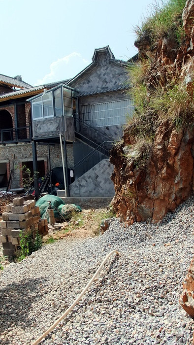 在丽江古城国际客栈休息。上图摄于二楼房间门口的走廊。